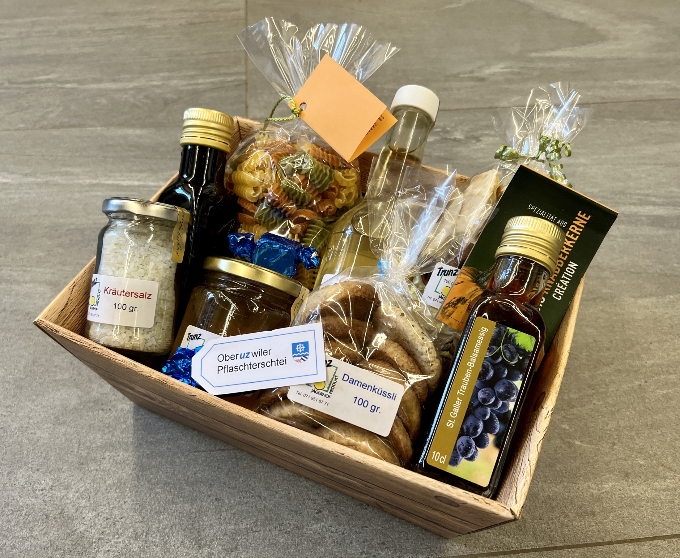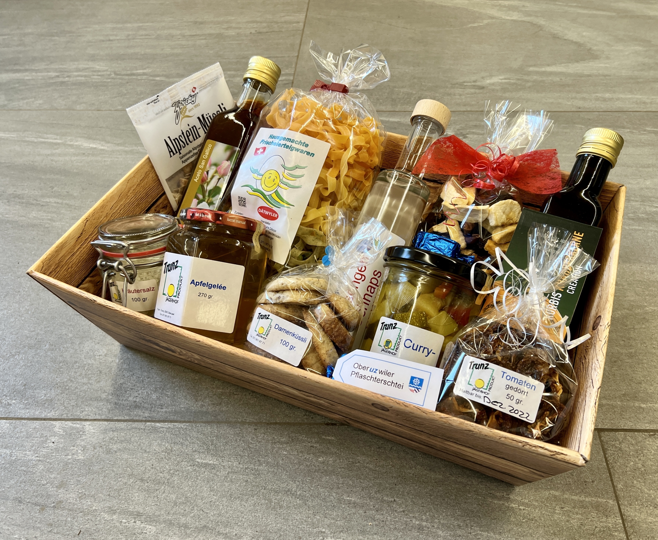 Das Jägerhof-Kistli mit haltbaren Produkten finden Sie bei uns im Laden.